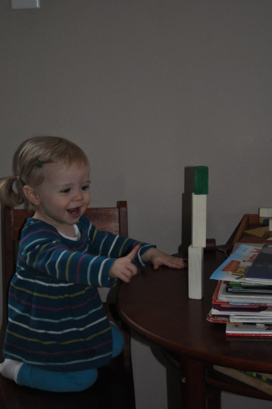 Haley spent a loooooonnnnggggg time focused on getting this block tower. She ran and got me when she finally got it!
