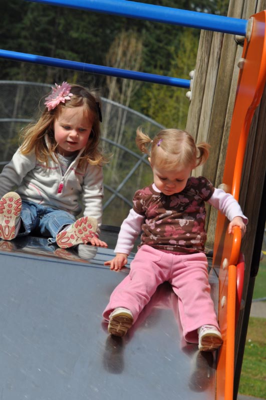 The girls were more interested in the slides than the sticks.