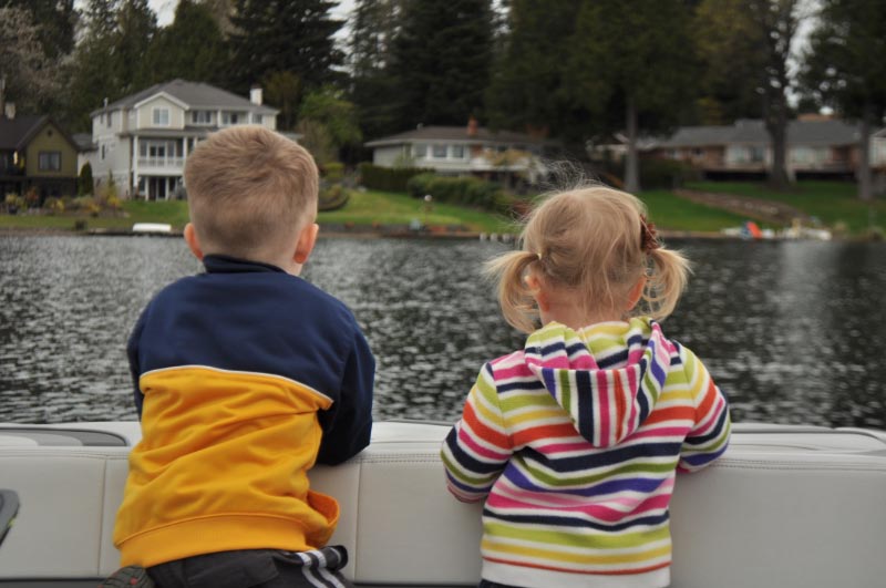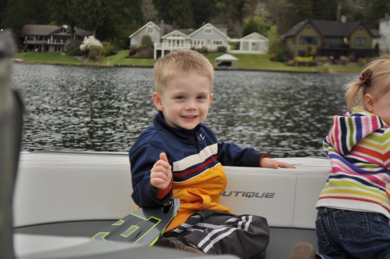 And guess what?! We don’t need a baby holder anymore. That’s right – JT and Haley sat nicely on the seat while Jim or I drove and did just fine. JT can flag, and does a great job. Haley sat very still the whole time and didn’t slide around on the corners. When the whole trip was over and we were loading the car, Jim looked at me and said, “You know what this means, right?” Big smiles. Not that we don’t love having other people in the boat – because we do! – we just get super disappointed when it’s a calm, dry day and we can’t find anyone to join us or babysit. Hooray for growing children!