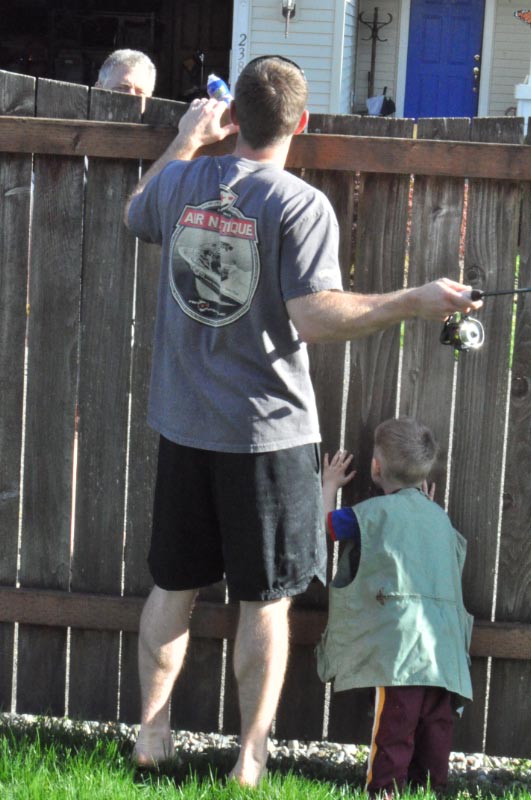 But BEFORE the fishing trip, JT and Jim practiced casting in the backyard.j