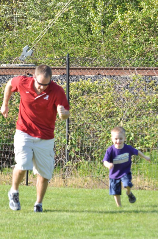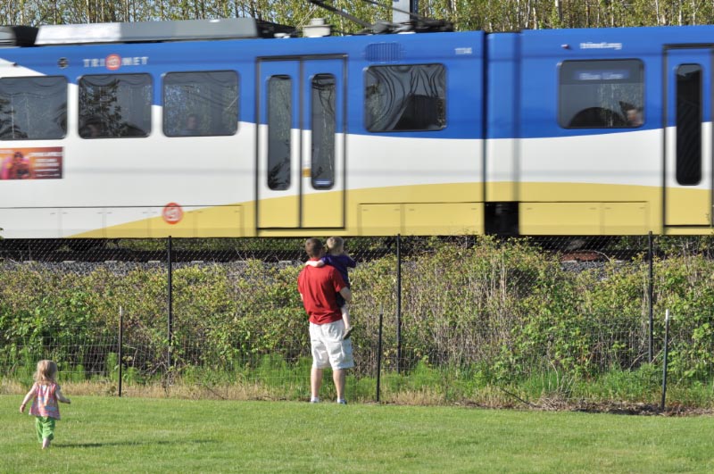 The MAX train went by the park every fifteen minutes or so. A few times Jim took JT and Haley to the fence to watch. Once the engineer blew the whistle at them!