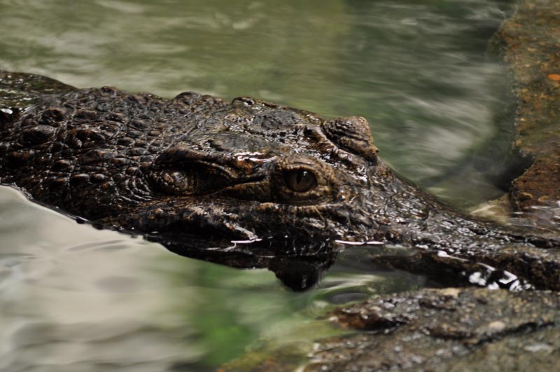 The crocodile made JT a little nervous. Its big snout and teeth were pretty close up, even behind glass. He felt better standing back a bit.