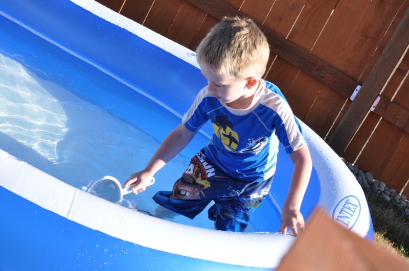 JT noticed a bug floating in the pool and suggested I get the strainer from the kitchen to take care of it. This was quite a production and he proceeded to spend many minutes cleaning out the pool. Good stuff.
