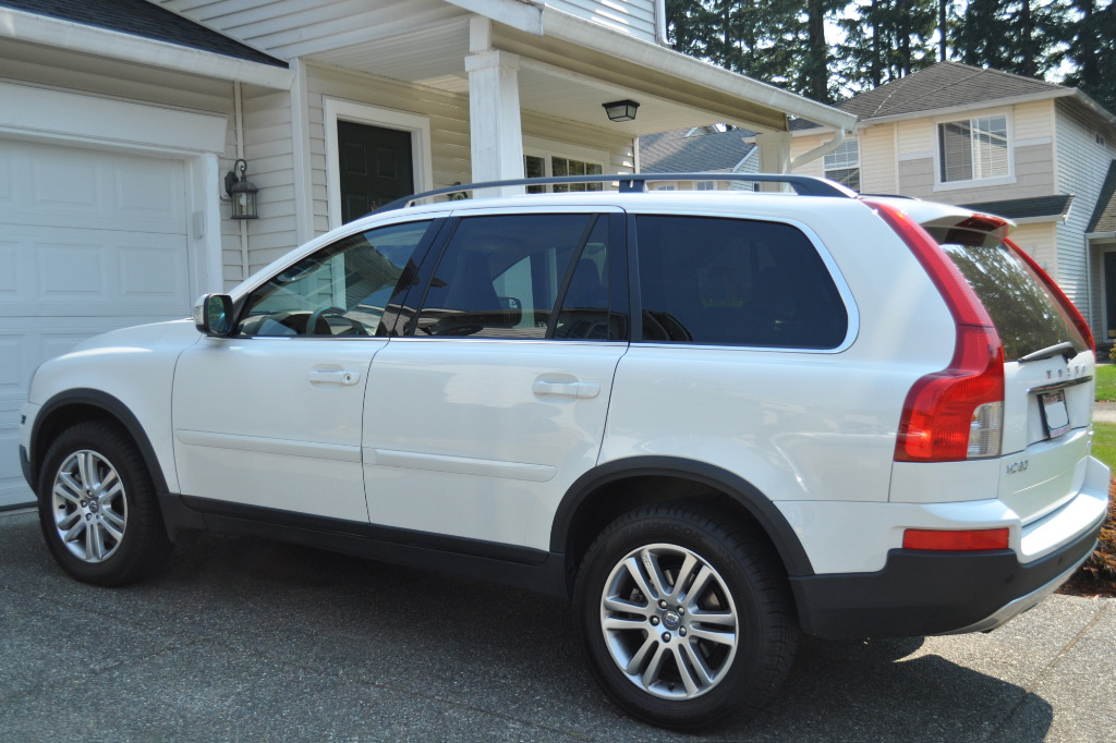 Then on Saturday we went car shopping. I have been hoping for a vehicle with a third row since we traded in the Explorer three years ago. Then we bought the Volvo S60 two years ago and were introduced to the world of Volvo, which we like very much. We loooooove our car. But it was really time to get something that fit our family better. JT’s growing feet kept getting smashed behind the driver’s side seat, and when we went away overnight we had stuff crammed everywhere. Plus, I am the field trip coordinator for preschool. Clearly we need more room. 🙂 We said we’d wait until we paid off the car to buy something else, so…