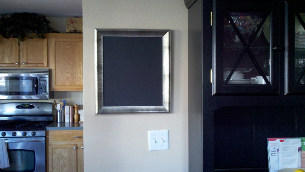 I wanted to post JT’s verses in the house and I thought of my friend Stephanie’s chalkboards. So I had a little craft and made a chalkboard for our wall. I love it!
