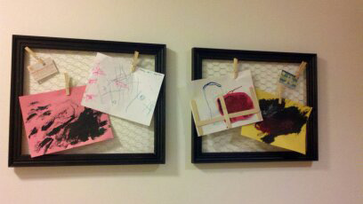 I also got craft about a month ago and made art boards based on Stephanie’s idea as well. (I should visit her more often…) They are great for pinning up the kids’ art work and they look great on my wall!