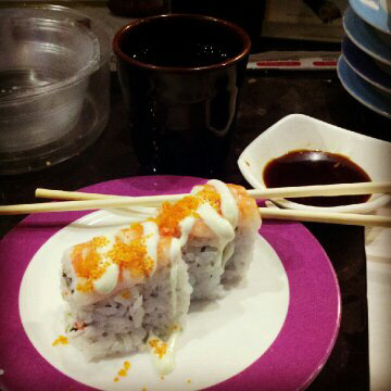 We started with sushi, and fortunately Jim was able to get some orange chicken, fried rice, and dumplings so he could avoid the raw fish. I ate lots of raw fish, drank lots of tea, and had fun trying new things.