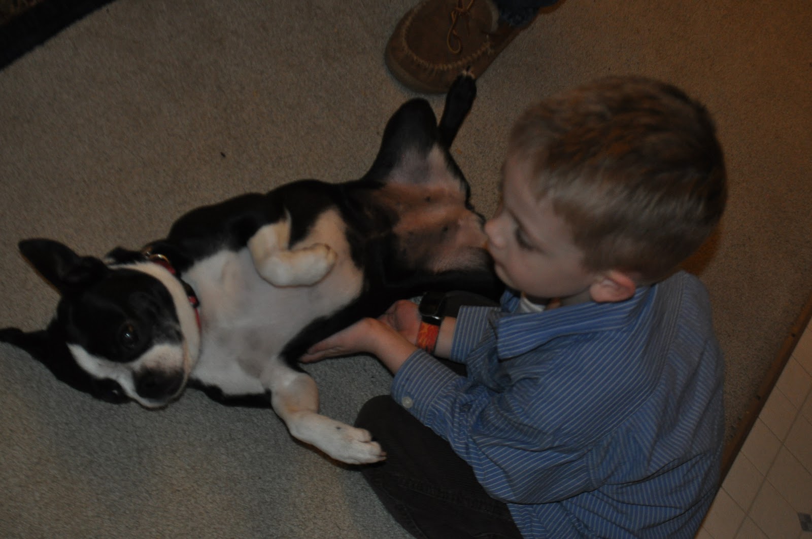 Haley enjoyed eating her dessert with Ma-Maw at Uncle David and Aunt Linda’s house… and seeing Hosanna, her little cousin. JT enjoyed petting the dog, Cherry.