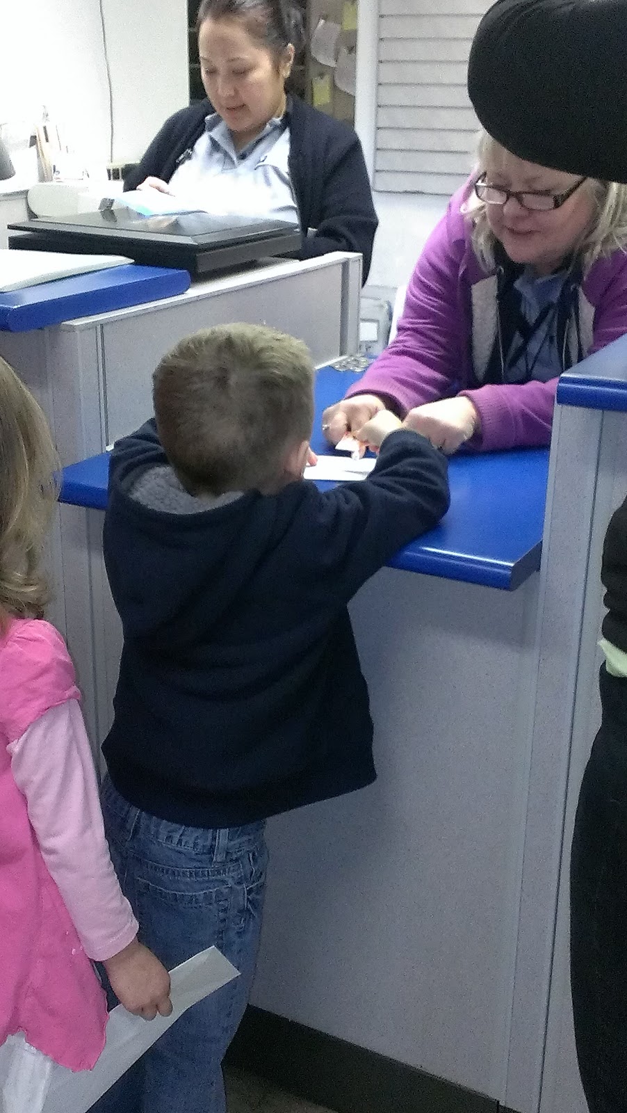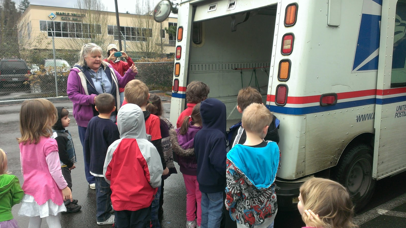 Then we got a tour of the backroom and the mail bins. We even got to go outside and see a mail truck! It was really fun and I actually learned a lot too.