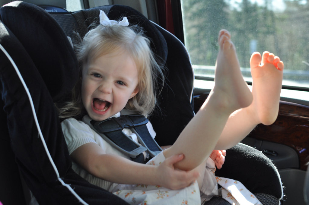After church, Haley and I played while the boys loaded trailers. Then we had a picnic in the warm sun before heading to my parents’ house. Here we are on the drive down. 🙂