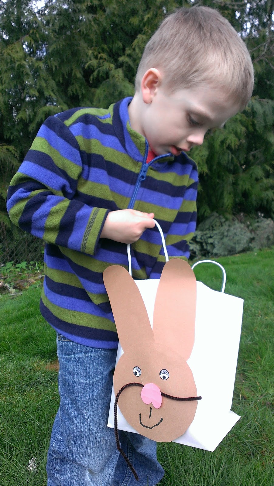 When we went downstairs for breakfast, JT and Haley found Easter bags from Grandpa and Grandma Keene. They are loved!