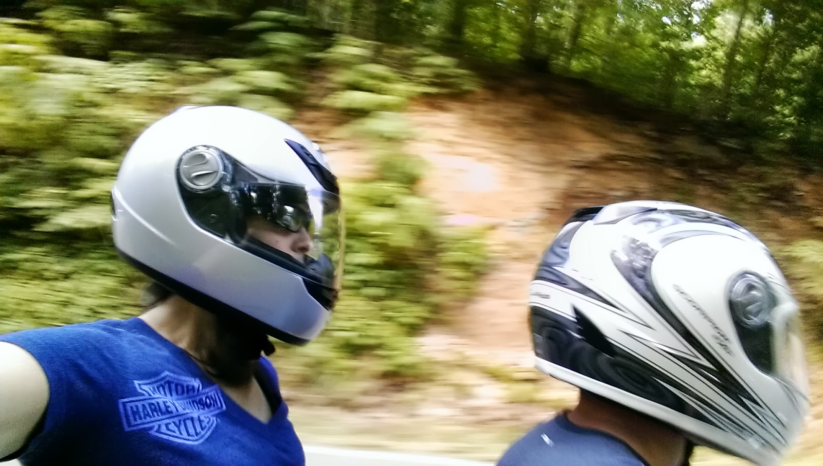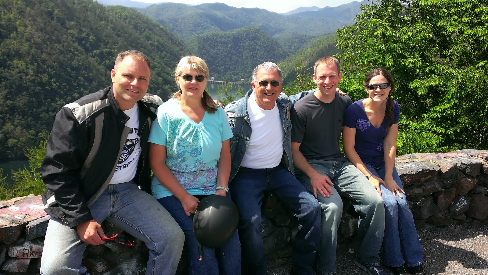 Tuesday we went on a motorcycle ride. Jim’s parents rented him a motorcycle as a birthday gift so we could ride with my parents (each on their own Harley) and my brother. We rode the Tail of the Dragon on Hwy 129 (318 curves in 11 miles) and then home on the Cherohala Skyway. It was absolutely beautiful!