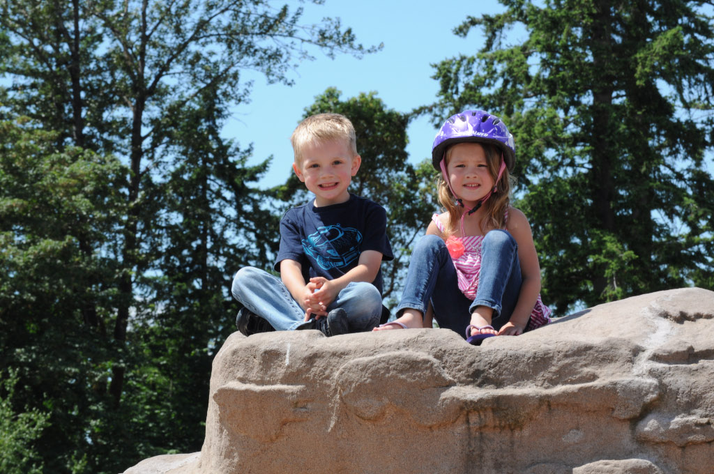 If you have kids you know that a good park is a wonderful thing. Heritage Park has a huge play structure, a covered eating area, clean bathrooms, climbing rocks, and a large field surrounded by a walking/biking path that you can see from the field. We met some friends there this morning for play and had a great time!