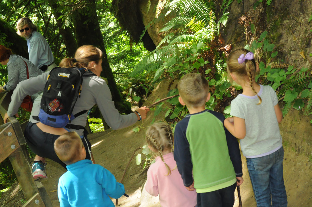 | Ranger Elisa points out a mouse on the trail |