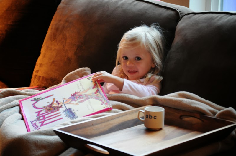 Haley wakes up much earlier than JT, so she and I get some time together in the mornings. Sometimes she wakes up too early and I’m still doing my Bible study. This morning was one of those times. But she was very happy snuggled on the couch with Fancy Nancy and a cup of milk. What a sweetie. π