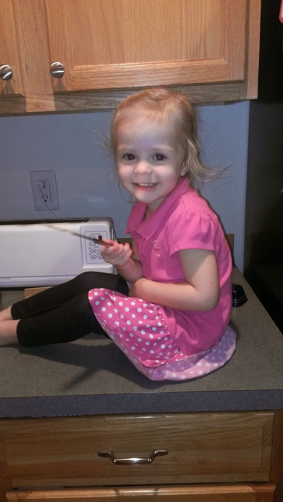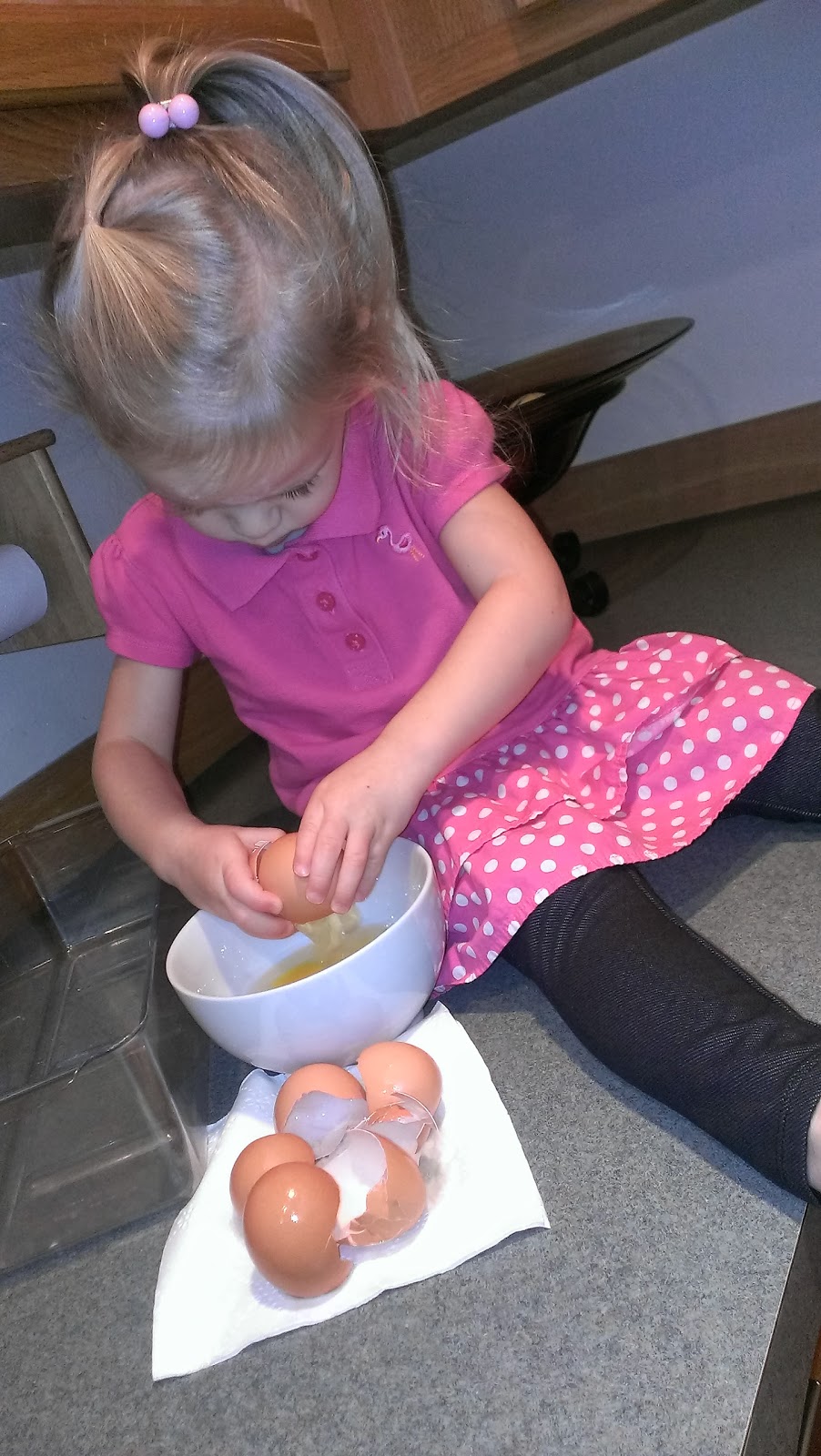 Haley is a big helper at breakfast. This morning she cracked the eggs and toasted and buttered the English muffins!