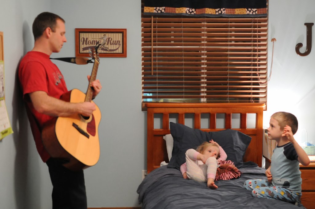 Now we have plenty of room for Jim’s new bedtime routine of singing worship music with the kids. Plus, we’re reading Charlie and the Chocolate Factory and we all snuggle in for that. It’s great!