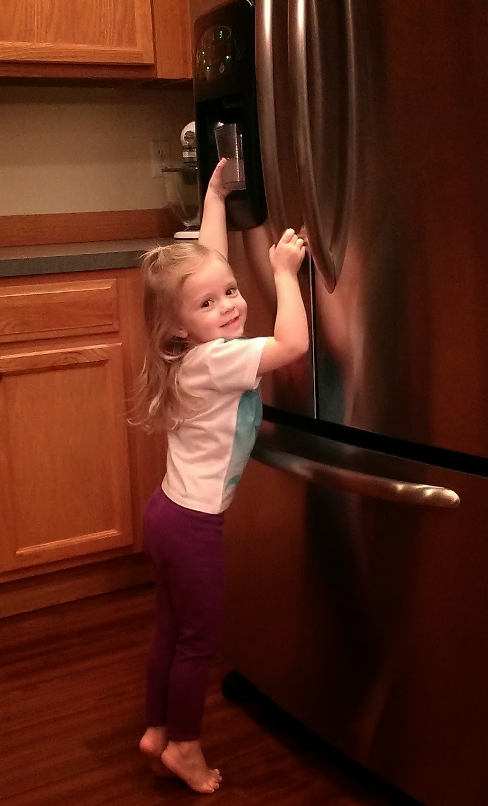 Haley figured out she can get her own water from the fridge to fill her cup (and thus water consumption has skyrocketed).