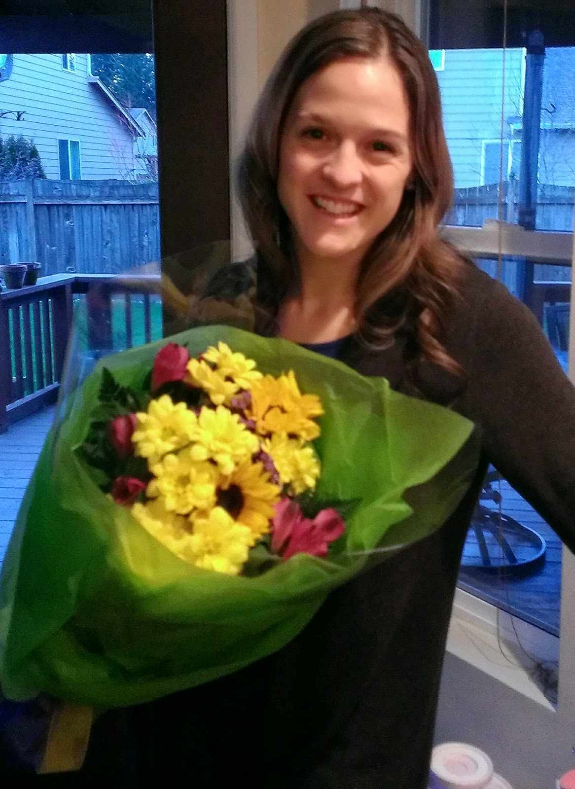 Jim did come home from work early Friday night, surprised me with a beautiful bouquet, and took me out to my favorite local Chinese restaurant. Then we both packed for our separate trips and ate Ben & Jerry’s in bed, watching The Tonight Show with Jimmy Fallon on DVR. Nice. 🙂