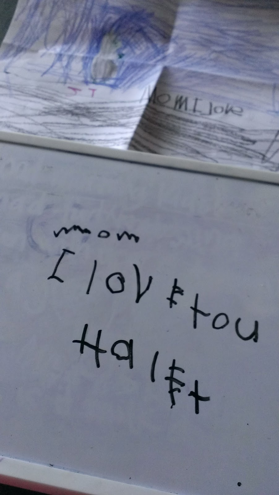 I turned 34 a couple of weeks ago. I forgot to blog about it because it wasn’t a BIG birthday, but it certainly was a nice one. Jim was out of town for work and my children were out of town as well because I had a conference in Edmonds to attend. But I came home to this special note from Haley, which apparently she wrote all by herself except for the V.