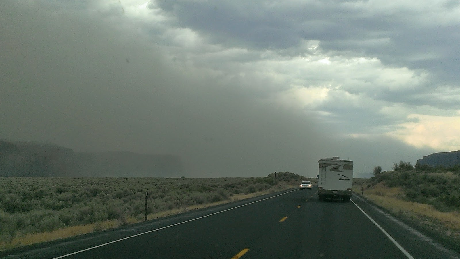 We arrived into camp in the middle of a crazy storm. Visibility was so bad by the time we were parked in our site that we couldn’t see Steamboat Rock! We waited out the storm in Grandpa and Grandma Keene’s motor home and ate tacos until we could set up.