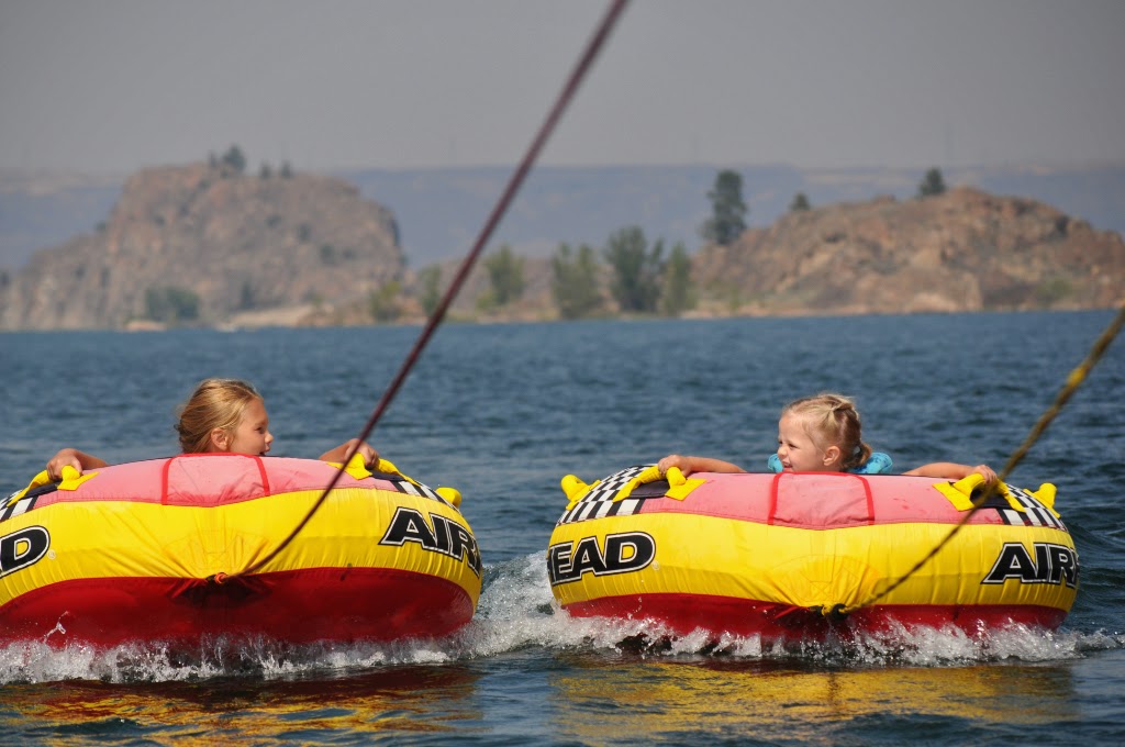 One of our favorite things to do is stay in the boat as long as possible: skiing, wakeboarding, tubing, swimming, and floating.