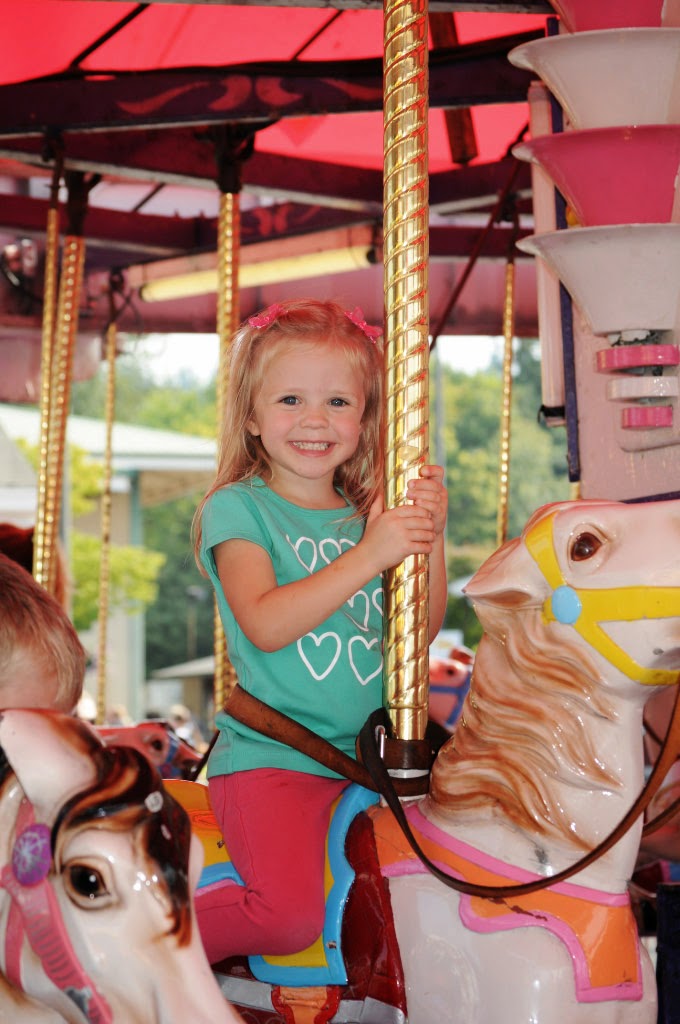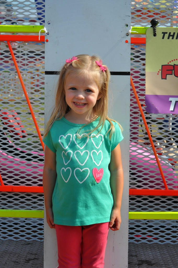 | Haley demonstrating she is tall enough to ride most children’s rides! |