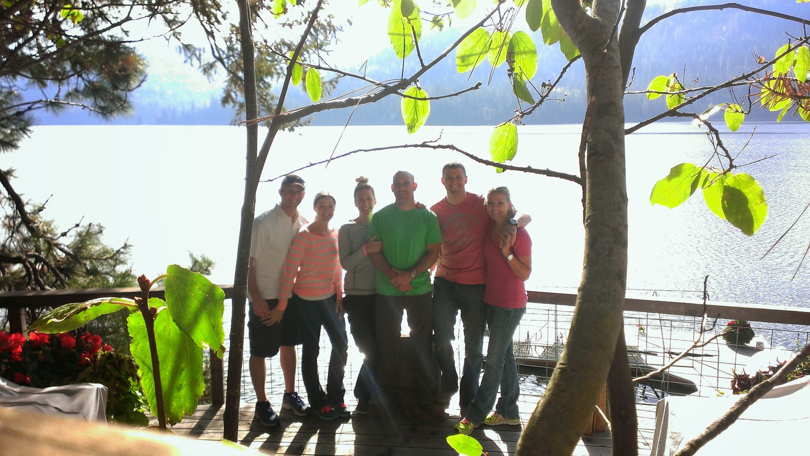 | Group photo on the deck with the timer on my cell phone camera. |
