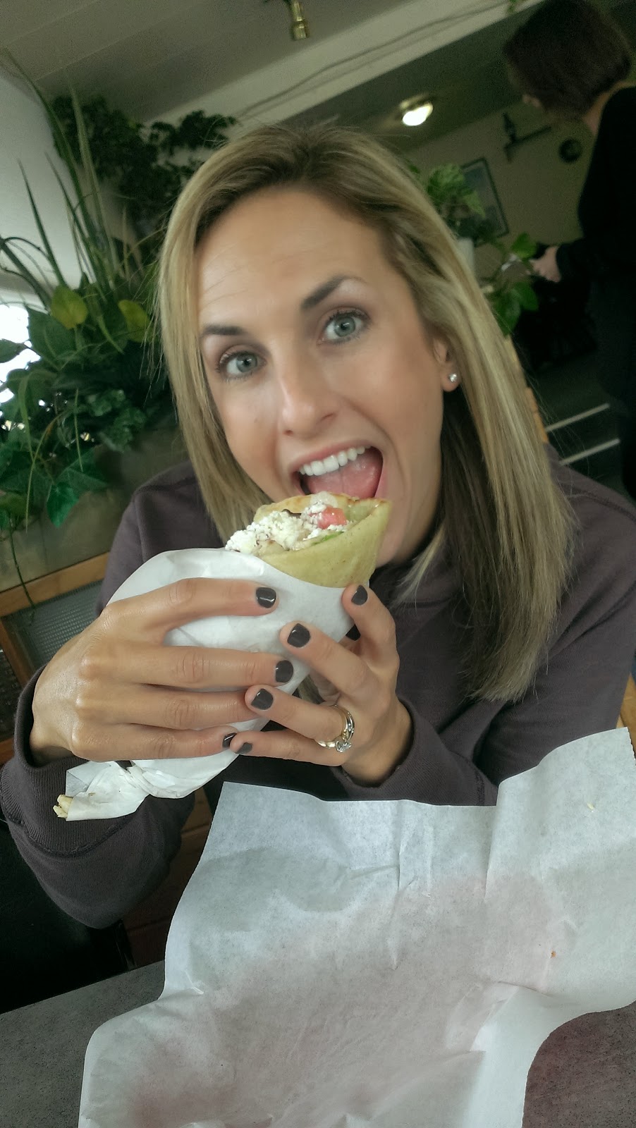 | Elisa’s first Greek gyro – worth documenting. |