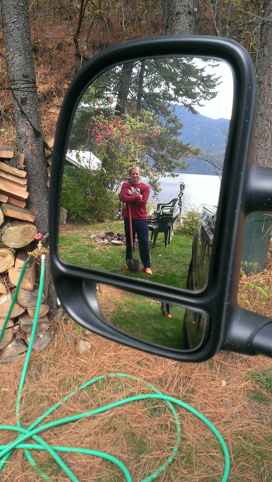 | Jim watching the ladies leave in his truck to go shopping in Coeur d’Alene. |