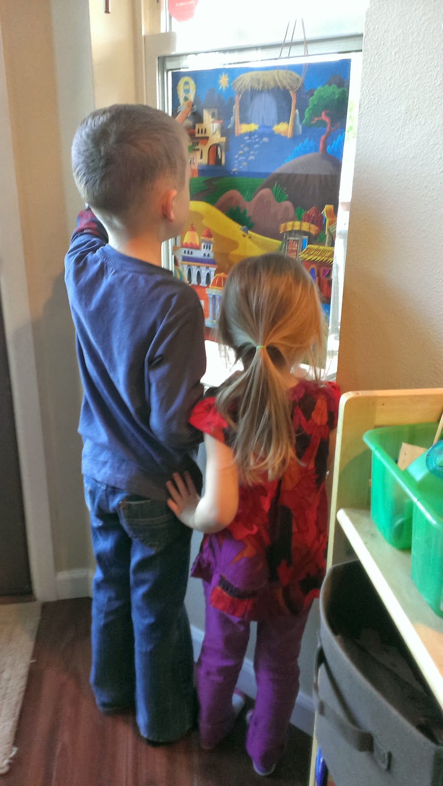 This year we are enjoying our Advent season in several different ways. We choose to focus on the love story between God and His people during this special time of year. I made an Advent calendar with pockets last year, and this year I found a great activity (thanks, Katie!) to use with it. We draw a new character each day, and place it on the colorful poster of the scene of Bethlehem. It started with Isaiah, Zechariah (the prophet), and Micah. I love how we are telling the whole story!