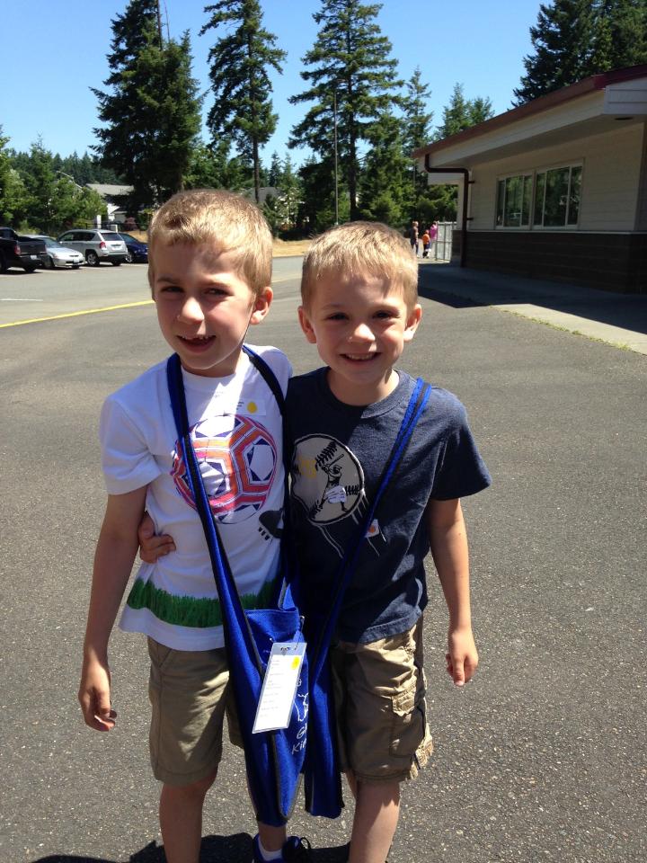 Finally, JT’s last day of school was today. He had a great time at move-up day! He knows a few kids in his class next year, and he was assigned to a looping class for 1st/2nd grade. We’re very excited for him. Here he is with his best K friend and walking home buddy, William.