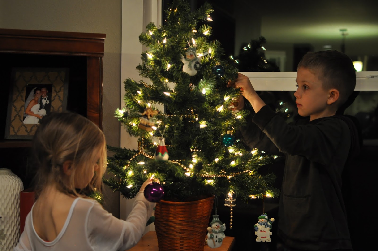 On Friday, of course we did a little shopping and decorated the house. We have the perfect spot for the tree, which you can see from the street and isn’t in the way, and we didn’t have to rearrange furniture. We have a second smaller tree in the family room with colored lights and all sorts of random ornaments as well.