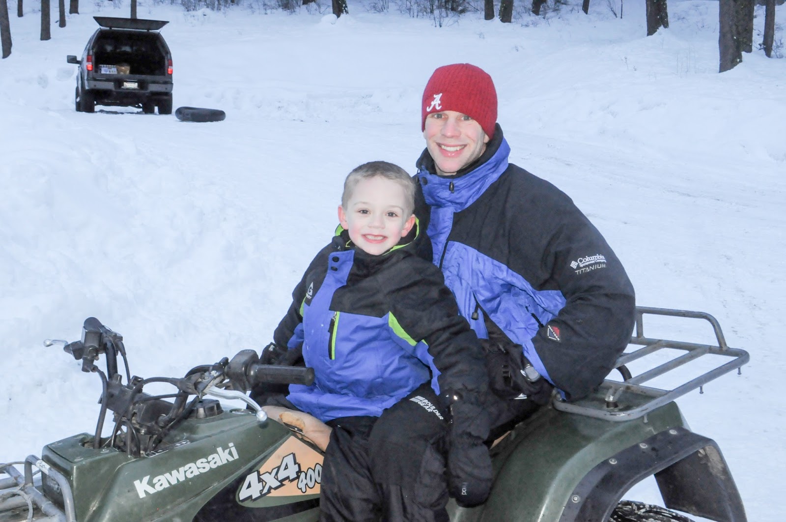 Before heading in for our hot tub and dinner on Sunday, JT and Jim had a four wheeler ride and Haley perfected her skeleton on the sled track.