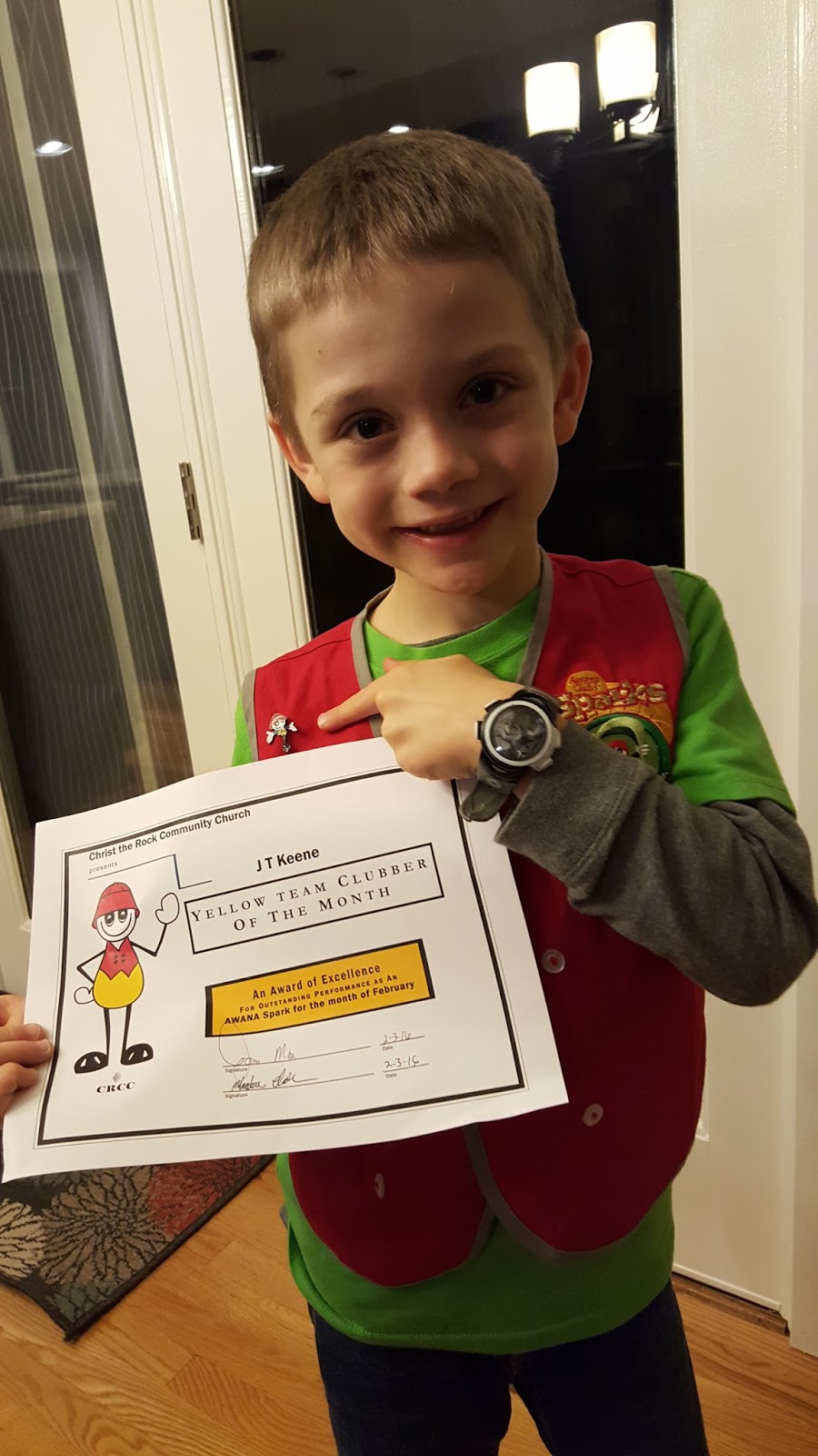 How is it already February? JT was awarded Sparky of the Month at Awana the same night he said his personal record for number of sections signed off, so that was exciting!