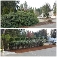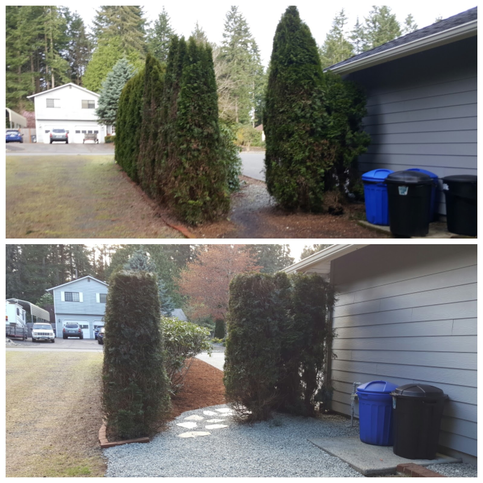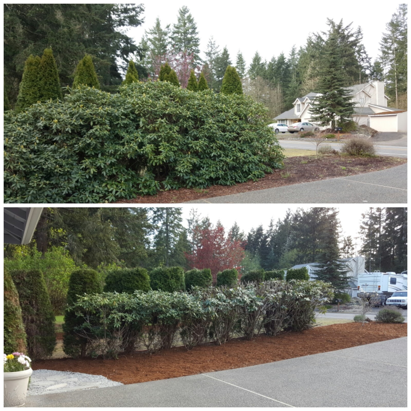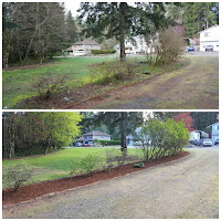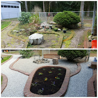 We actually finished up the previous week’s yard work at the end of spring break. We had Ali’s help cutting back these crazy bushes and rhododendrons, and then we laid new bark. All week long, I worked a couple of hours a day digging out the old bark, weeds, and gunks, and moving flagstone so we’d have a new walkway around the side of the house where it got very muddy last winter. Then we added crushed rock to the walkways on the side of the house and in the back yard, and planted “evergreen, flowering, shallow rooted, partial sun, perennials” in the egg-shaped septic tank identifier in the back yard.