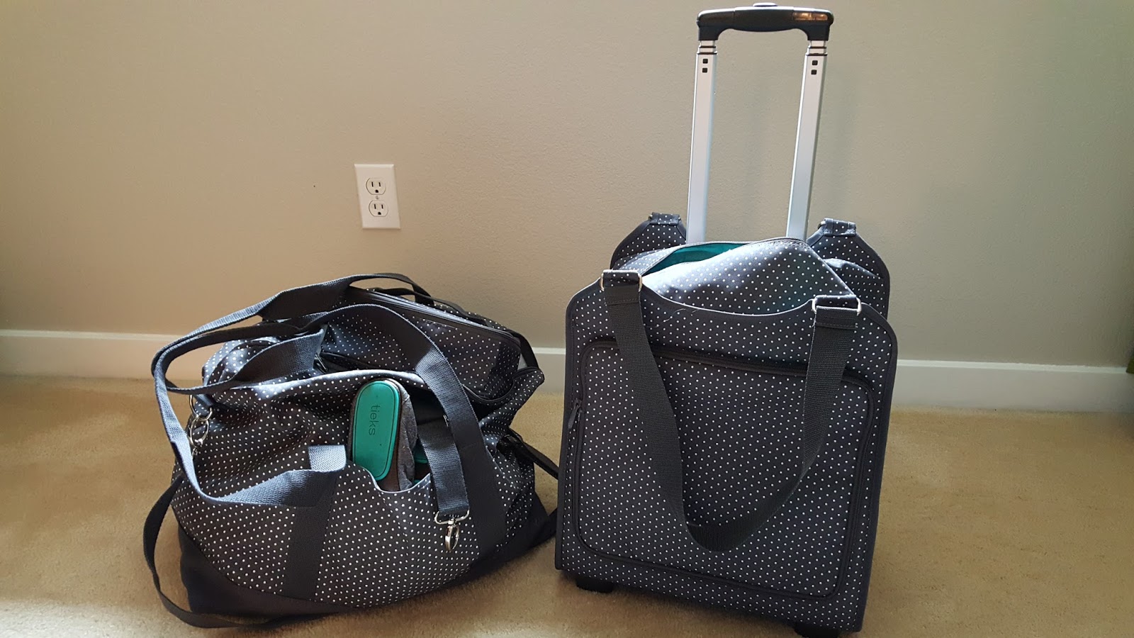 | My new matching work trip bags. Inside: matching makeup and hanging travel cases! |