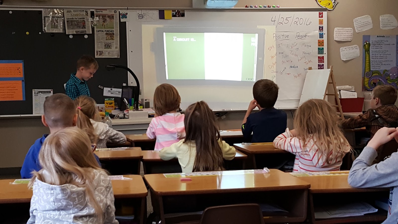 The following Monday, JT had to give his Personal Passion in Learning presentation. He chose circuits. I’ve been posting our activities on the blog, so that’s not news. He did a great job sharing what he knows about open, closed, series, parallel, short, and more circuits. Then he built a banana piano using the Makey Makey board to control the computer, and everyone wanted a turn. It was pretty funny when he said, “Does anyone want to try the banana piano?” and every single student raised his or her hand.