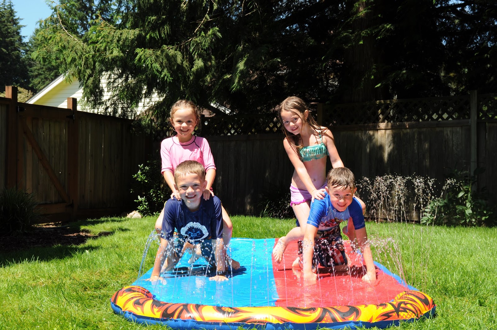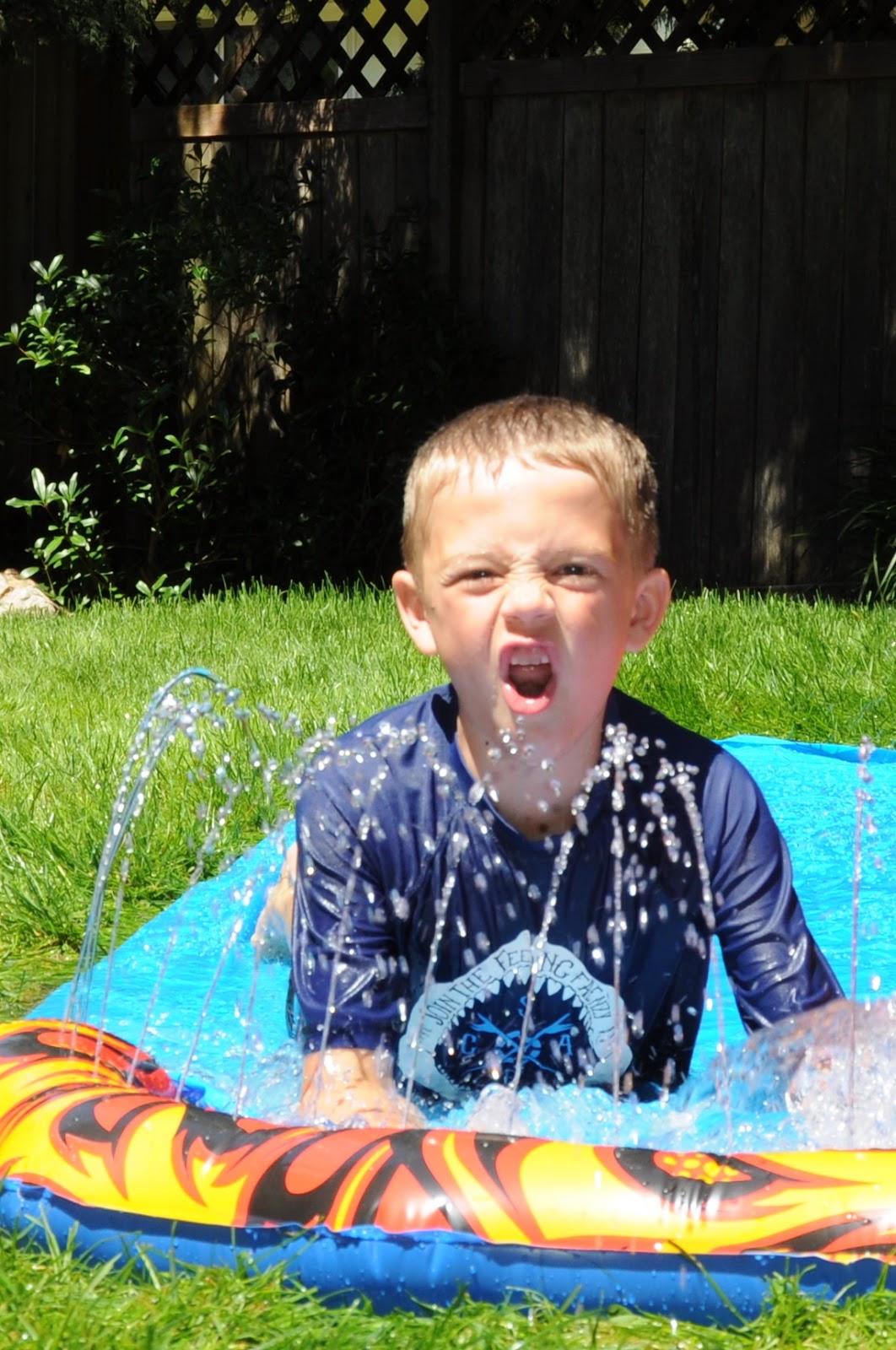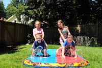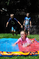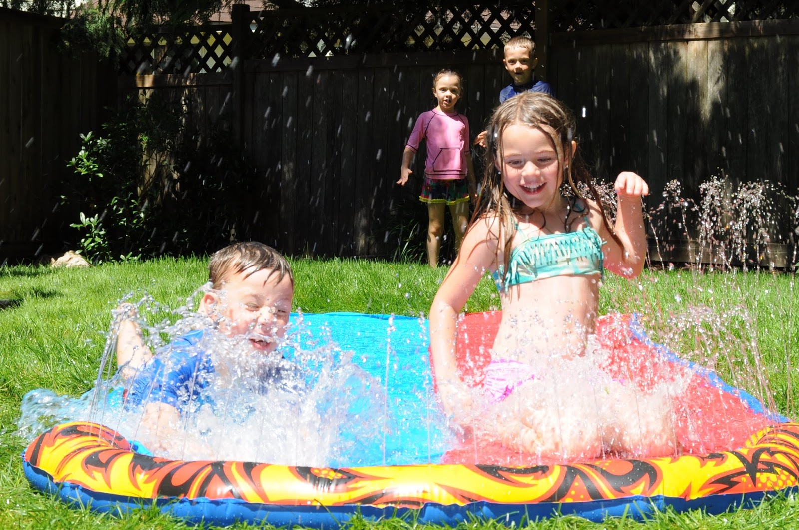 Double Slip ‘n Slide Posted bywe4keenesJuly 28, 2016Posted inUncategorized We broke out the double slip and slide last week when the weather was lovely. It’s so fun to have two lanes for sliding! We invited Sawyer and Jozie down to slide with us. Related