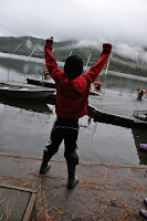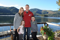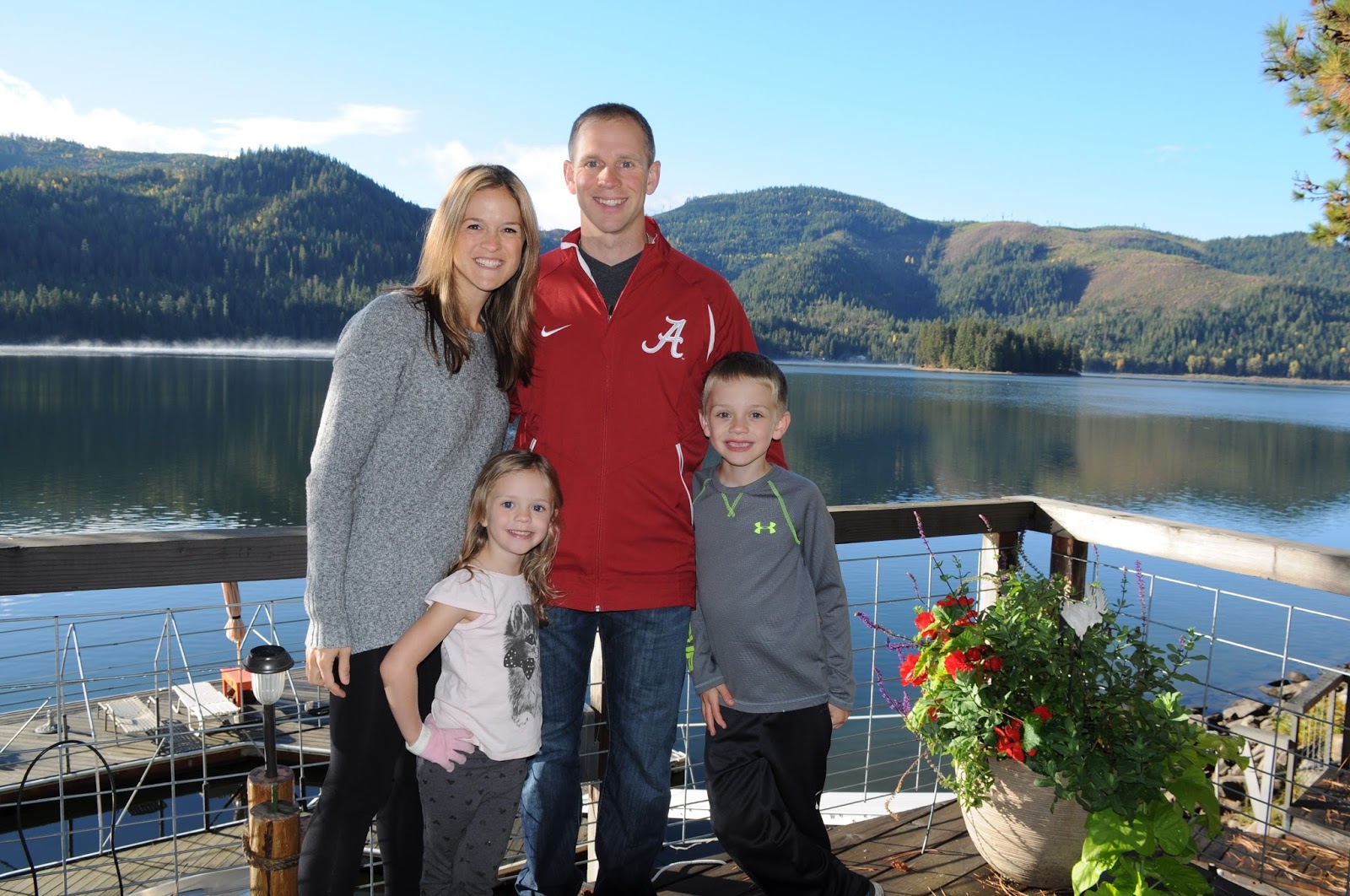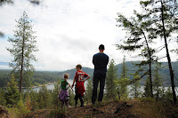 In the afternoon, Jim took a lunch break from football. We walked down to the water so the kids could see the cabin from the lake.