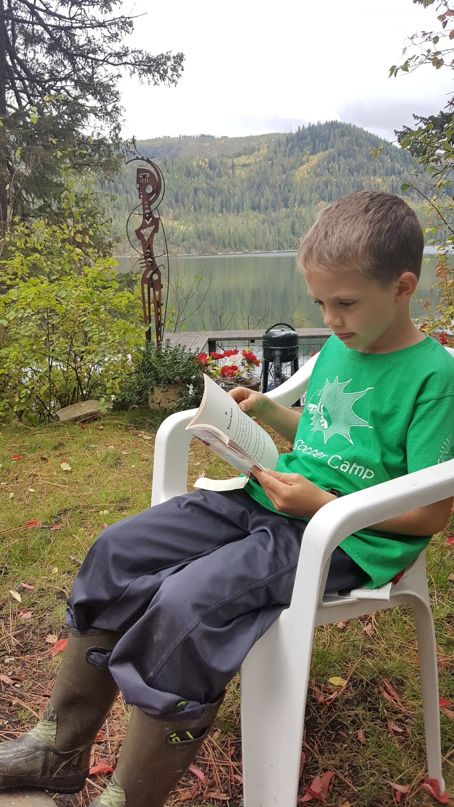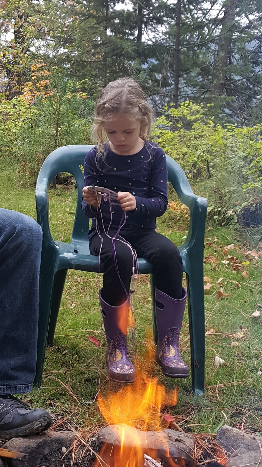 When we got back, Jim built a fire outside and the kids played while I read by the fire. It was so relaxing! JT read beside me for awhile while Haley and Jim played iSpy and worked on a bracelet.