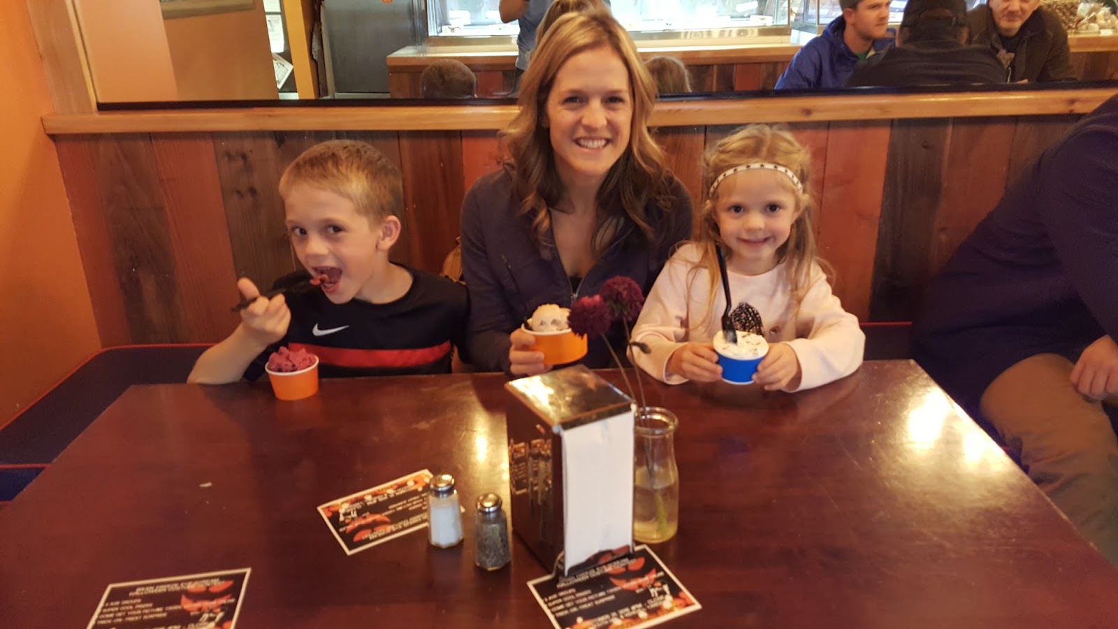 We picked the kids up from school early on Friday to hit the road early. That was the first time either of them had ever been called to the office over the intercom. Very exciting stuff. We had snacks in North Bend, dinner in Moses Lake, ice cream in Spokane, and a late arrival in Spirit Lake.