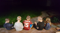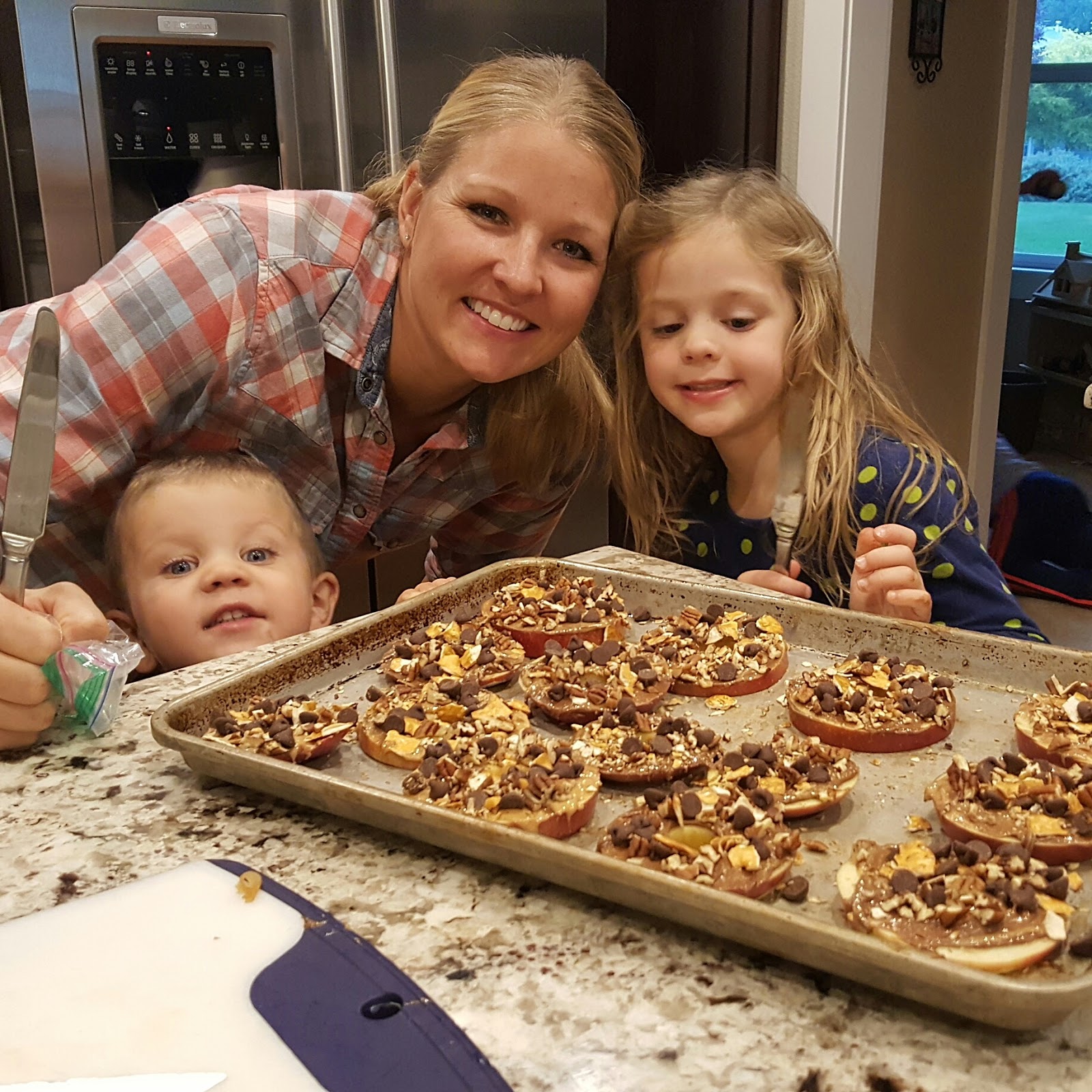 Then the Bonnell family came over for football watching, shooting hoops, and food. Katie made these amazing apple slices with peanut butter and Nutella swirled on top, sprinkled with chocolate chips, nuts, and pretzels. They were so yummy!