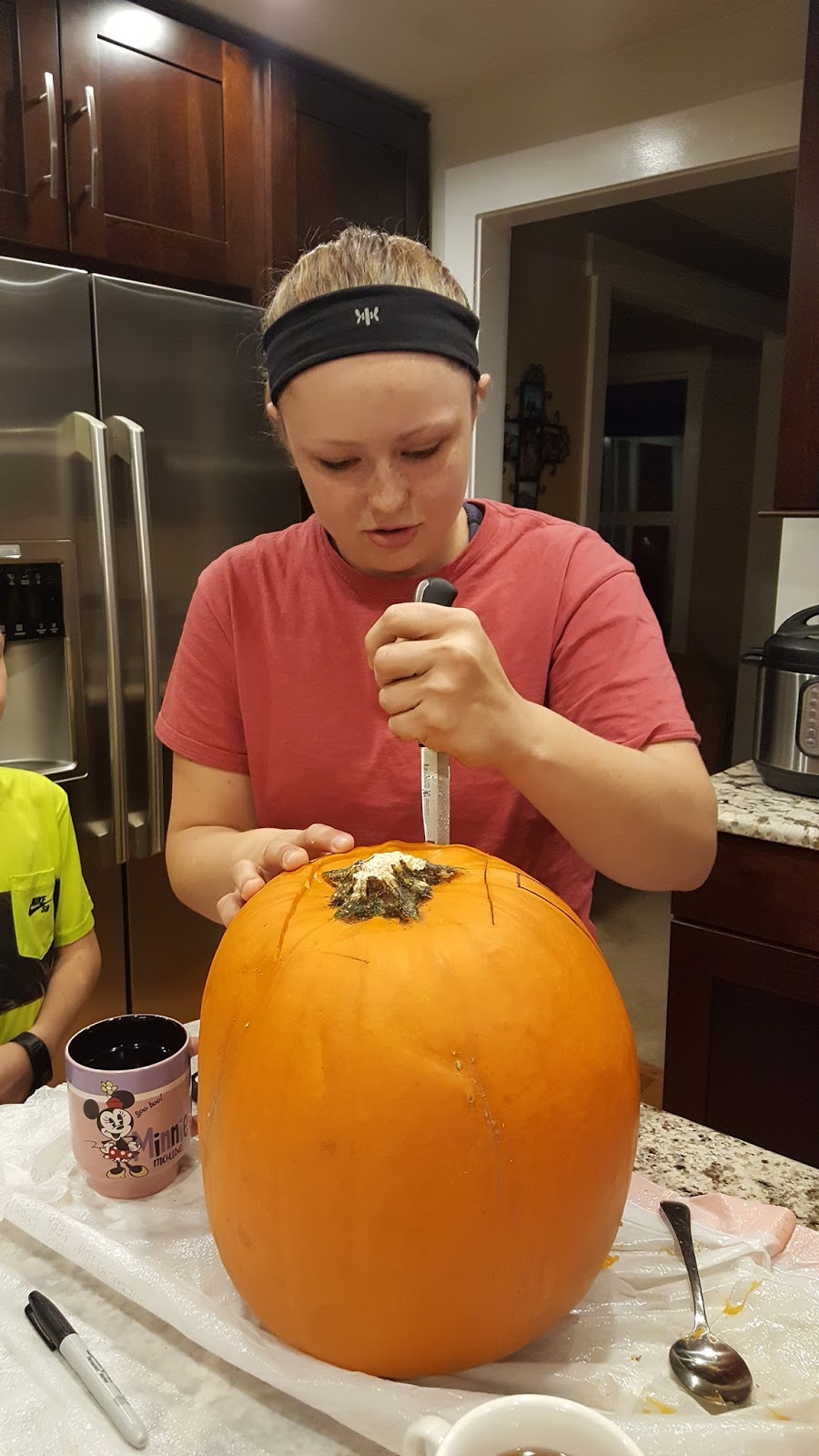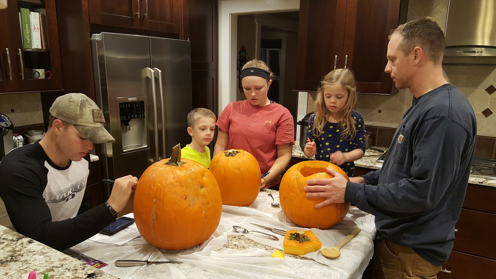 On Sunday, after church and more yard work, Preston and Ali came over for dinner and pumpkin carving.