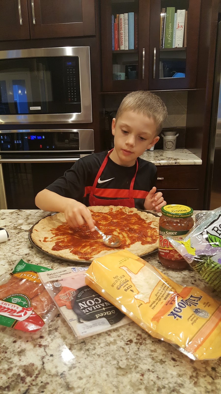 JT has continued to make dinner on Saturdays. This week he picked homemade whole wheat pizza – half pepperoni and half Hawaiian. And then we decided to make it family movie night, because Haley was going to be Jasmine for Halloween and they’d never seen Aladdin. So he made brownie pudding cake for dessert as well.