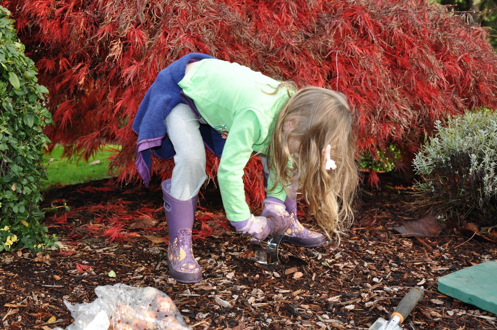On Saturday, we did lots of work outside after JT’s awesome soccer game (his team’s first win of the season, 4-1). The men worked on leaf blowing, mowing, and winter fertilizing the yard while the women planted 100 spring bulbs.