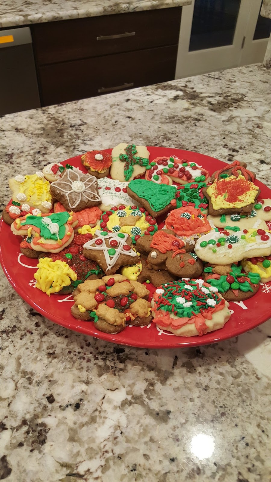 Tuesday we made Christmas cookies with my side of the family. We brought home a lot of cookies and ate quite a few while we were there as well.