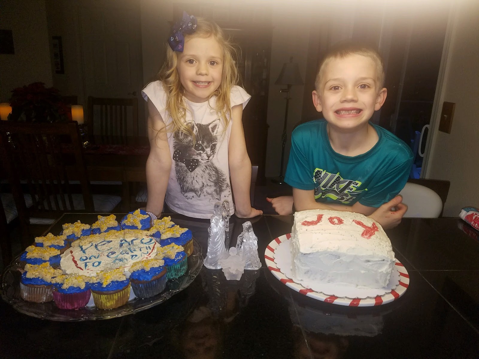Friday, JT and Haley had a special day with Grandma Keene. They made birthday cakes and cupcakes for Jesus (to eat on Christmas) and saw the movie Sing, which they loved. Afterward, we all walked through a local Christmas house with snow on the ground. It was very festive!