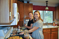 We sat down to dinner right on time! We had roast, our favorite potatoes au gratin, roasted broccoli, and homemade dinner rolls.