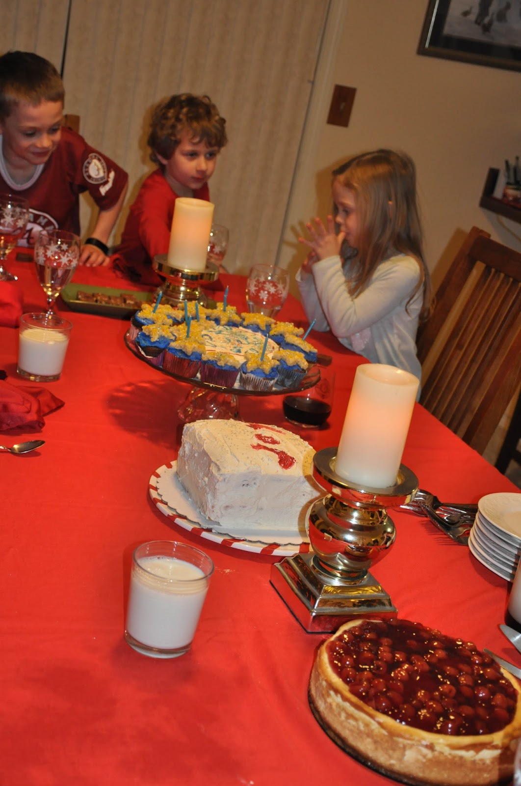 For dessert, we had the special birthday cakes and cupcakes that JT and Haley had baked with Grandma Keene two days before… and a cheesecake I brought, and more fudge. We sang happy birthday to Jesus before we dug in!